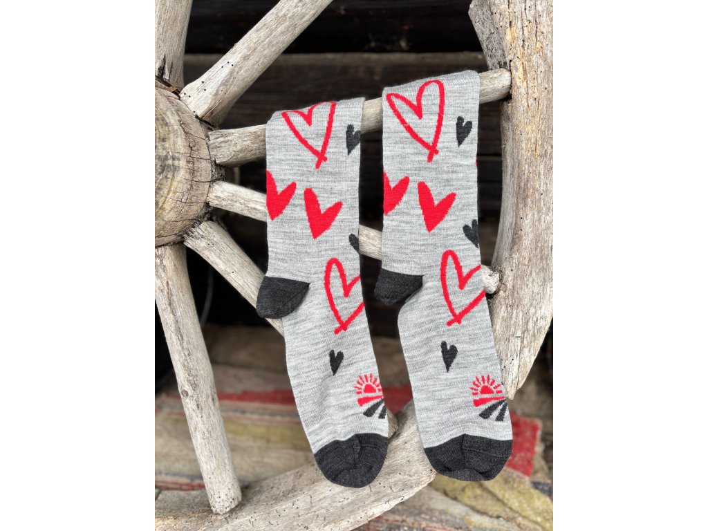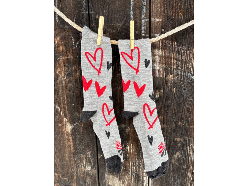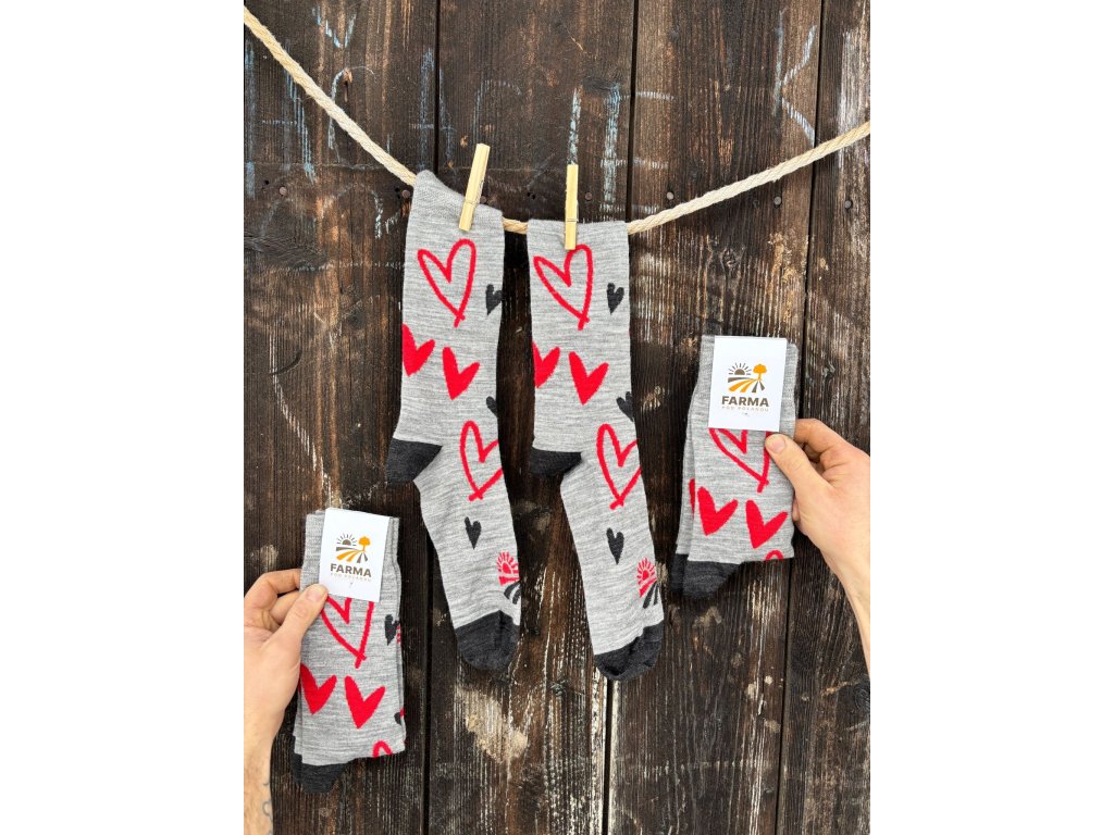 Predstavujeme ti Farmárske Valentínky - ponožky z merino vlny s veselými srdiečkami.